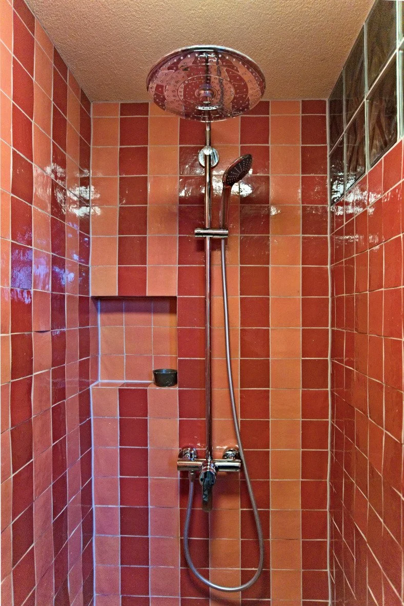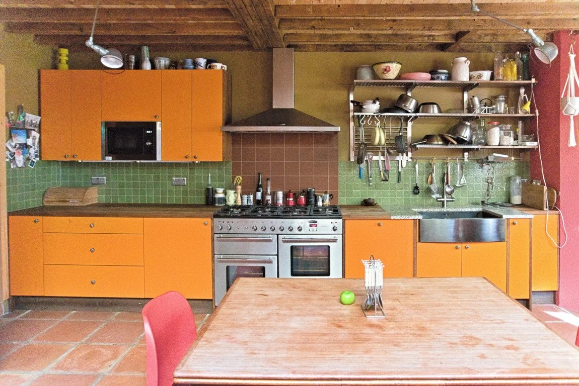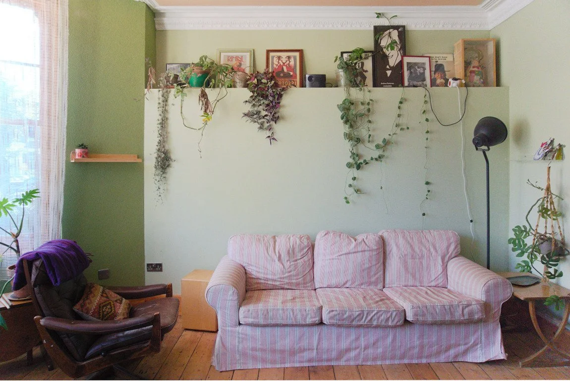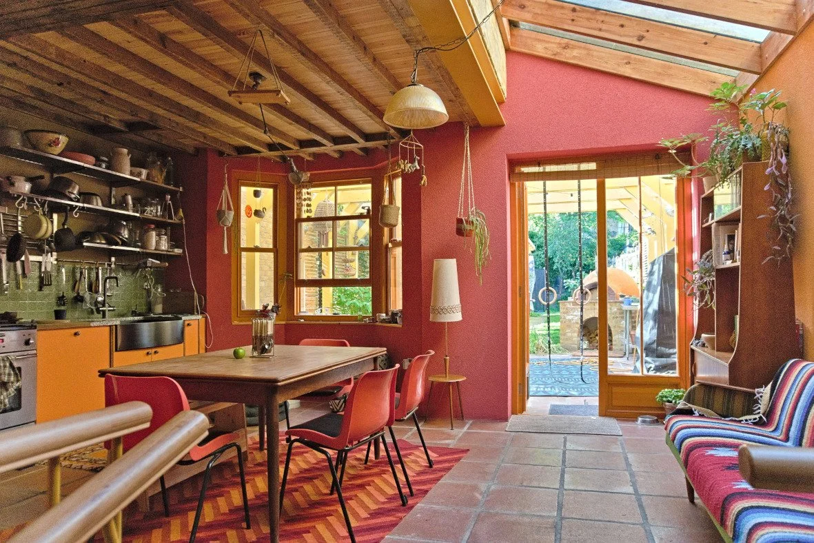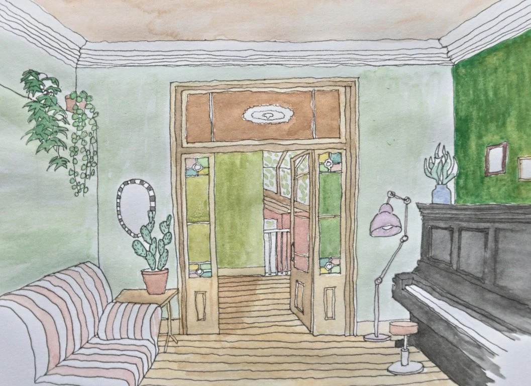 After 5 years living in their house designed by our practice the family had outgrown their home and were in need of a more spacious property. They found a appropriate house and contacted Ben Kuenzel Architecture again to extend and reconfiguring the house. The design included underpinning the basement and installing a waterproofing system to accommodate a guest bedroom with en-suit bathroom, a snug and a utility room. A side return extension was added to create a larger dining kitchen area. A pergola which is partly glazed was designed to interlink the house to the garden via a transition zone. The new garden layout included a trampoline, a garden shed and pizza oven. A roof extension was added to provide two further bedrooms and a bathroom. When extending the roof the bonnet was added to the front, a feature that these Victorian houses originally had and that was removed in a former refurbishment. The front garden was redesigned to accommodate bike storage on two levels by Bikebox Works Ltd. Besides rebuilding parts of the unsound structure, the whole envelope was insulated and new doors and windows were installed throughout. The client was very specific in their choice of colour and finish internally. In every room the wall and ceiling finish was chosen. The client choose it in combination with varnished timber of exposed floor joists of the kitchen ceiling, new panelling in the stair case or tongue and groove cladding in the loft. In places the raw wall with timber stud-work and brick infill was kept exposed.