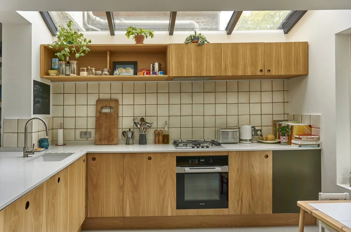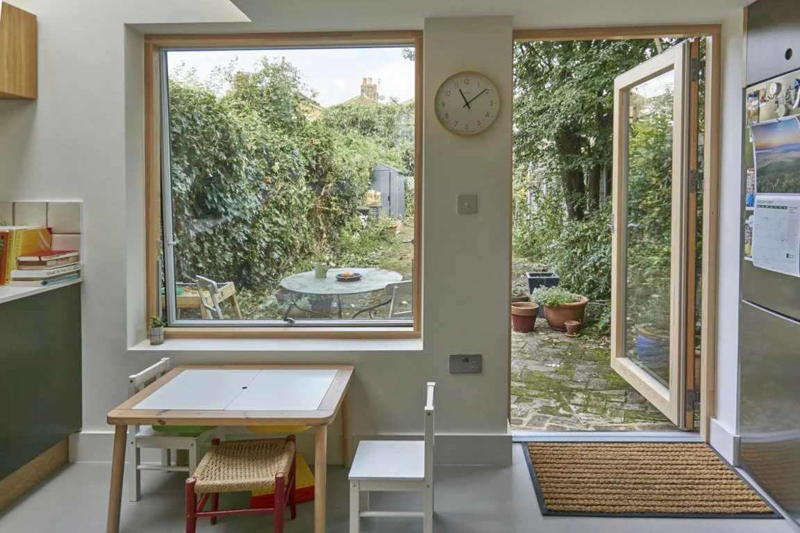 Kitchen with wide openable Velfac window and door to rear garden.
